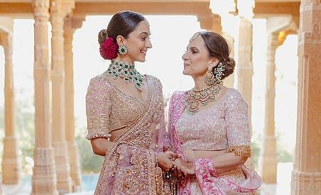 अभिनेत्री कियारा आडवाणीने (Kiara Advani ) लग्नातील काही खास फोटो शेअर केले आहेत. यातील एका फोटो कियारासोबत तिचा भाऊ आणि आई जेनेवीव आडवाणी दिसत आहे. पहिल्यांदाच कियाराच्या आईला पाहिल्यानंतर सोशल मीडियावर चर्चा रंगू लागली आहे. यावेळी कियारा पिंक – व्हाईट कलरचा लेहंग्यात ग्लॅमरस दिसतेय. तर आई जेनेवीव व्हाईट कलरच्या लेंहग्यात सुंदर दिसतेय.