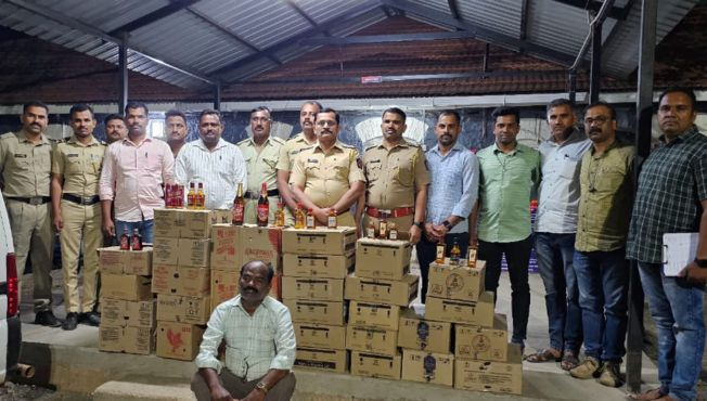 या माहितीच्या आधारे करवीर पोलिसांनी आंबेवाडी येथील शेतकरी संघांच्या पेट्रोल पंपाजवळ सापळा लावला. मिळालेल्या माहितीनुसार कोल्हापूरच्या दिशेने संशयित गाडी जात असताना पोलिसांनी ती अडवली. गाडीची तपासणी केली असता, गाडीमध्ये मागील बाजूस वेगवेगळ्या कंपनीचे विदेशी दारूचे बॉक्स आढळून आले. बिगर परवाना, बेकायदा विक्री करण्याच्या दृष्टीने आणलेल्या दारूच्या बाटल्यांसह मुद्देमाल शनिवारी रात्री अकरा वाजण्याच्या सुमारास करवीर पोलिसांनी आंबेवाडी येथे हस्तगत केला. रात्री उशिरापर्यंत गुन्हा नोंद करण्याची प्रक्रिया करवीर पोलिसांत सुरू होती.