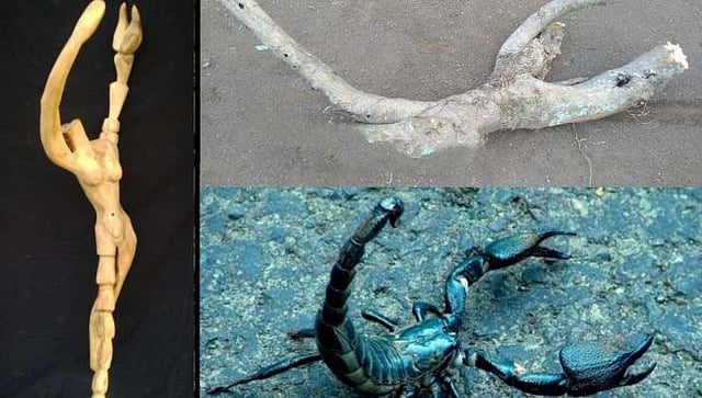 दरम्यान विंचवाचे शिल्प साकारत असताना यामध्ये अजून काही तरी वेगळे करता येईल या ध्यासाने इंगळी आणि इश्काचा डंख यांचा सुंदर मिलाफ साधण्याची कल्पना जाधव यांना सुचली. एक वडाची छोटी फांदी.. त्यात स्त्रीचा कमनीय बांधा आणि दोन्ही बाजूच्या त्या दोन फांद्या या जणू इंगळीच्या बाकदार, टोकदार नांग्याच. त्याच फांद्या या वर हात केलेल्या स्त्रीचे घायाळ करणारे रूप भासवतात. या प्रतिकृतीत वक्षस्थळ, ओटीपोट आणि कंबर… आणि त्या खाली एक पाय जणू प्रेम लाथाडत असल्याचे हे आभासी काष्ठशिल्प म्हणजे निसर्गाच्या कुशीतून जन्मलेला अद्भुत चमत्कारच म्हणावा लागेल.