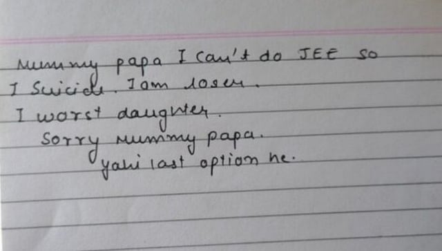 जीवन संपवलेल्या तरुणीचे नाव निहारिका असे आहे. ती जेईई मेनची तयारी करत होती. तिने कोटा येथील शिक्षा नगरी भागातील तिच्या घरातील खोलीत गळफास लावून जीवन संपवले. तिची परीक्षा ३१ जानेवारीला होणार होती. मात्र परीक्षेच्या आधी दोन दिवस तिने हे टोकाचे पाऊल उचलले. पोलिसांनी जप्त केलेल्या सुसाईड नोटमध्ये, निहारिकाने स्वतःला "सर्वात वाईट मुलगी" म्हणून संबोधले आणि तो "तिचा शेवटचा पर्याय" असल्याचे म्हटले आहे.