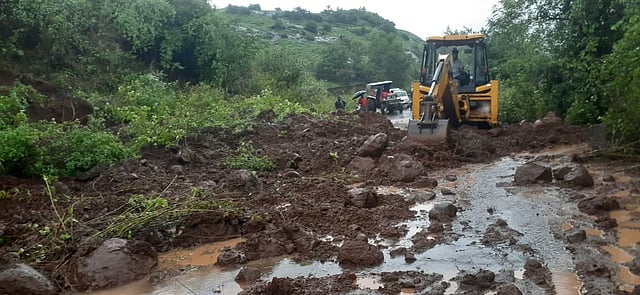 वाडा, पुढारी वृत्तसेवा: शिरगाव (ता. खेड) येथील नेकलेस धबधब्याजवळ शिरूर-भीमाशंकर राज्य मार्ग क्र. १०३ वर डोंगराचा काही भाग कोसळल्याने मार्गावरील वाहतूक ठप्प झाली. सुदैवाने यामध्ये कोणतीही जीवित हानी झाली नसून मार्गावरील वाहतूक सुरळीत करण्यासाठी तातडीने उपाययोजना करण्यात आल्या आहेत.