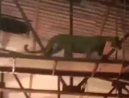 बुधवारी संध्याकाळी चारच्या सुमारास मराठी मालिकेचा "सुख म्हणजे नक्की काय असतं'" या सेटवर शूटिंग सुरू असताना बिबट्या सेटवर शिरला.