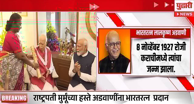 पुढारी ऑनलाईन डेस्क : LK Advanis Bharat Ratna : देशाचे माजी उपपंतप्रधान आणि भाजपचे ज्येष्ठ नेते लालकृष्ण अडवाणी यांना आज 'भारतरत्न' पुरस्काराने सन्मानित करण्यात आले. राष्ट्रपती द्रौपदी मुर्मू यांनी अडवाणींच्या घरी जाऊन त्यांना देशातील सर्वोच्च नागरी पुरस्काराने सन्मानित केले. यावेळी पंतप्रधान नरेंद्र मोदींसह अनेक नेते उपस्थित होते. यावेळी उपराष्ट्रपती जगदीप धनखर, पंतप्रधान नरेंद्र मोदी आणि इतर मान्यवरही उपस्थित होते. प्रकृती अस्वास्थ्यामुळे अडवाणी शनिवारी राष्ट्रपती भवनात आयोजित समारंभाला उपस्थित राहू शकले नव्हते.
