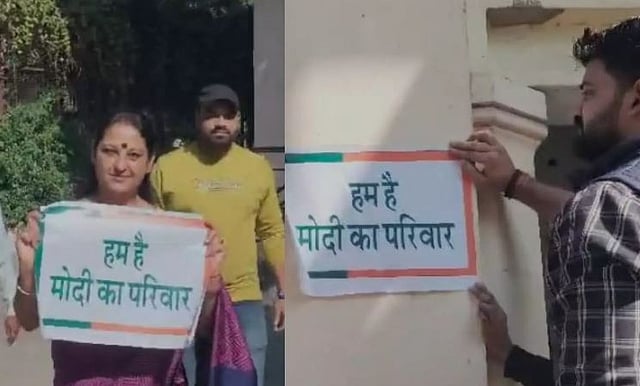 लोकसभा निवडणुकीपूर्वी परिवारवादावरून देशात नवा राजकीय वाद सुरू झाला आहे. लालूप्रसाद यादव यांनी पंतप्रधान नरेंद्र मोदी यांना कुटुंबच नाही, अशी टीका केली होती. त्यानंतर संपूर्ण देश माझे कुटुंब आहे, असे प्रत्युत्तर पंतप्रधान नरेंद्र मोदींनी दिले. यानंतर देशातील प्रमुख भाजप नेत्यांनी आणि पदाधिकाऱ्यांनी "मोदी का परिवार" मोहीम सुरु केली आहे. भाजप नेत्यांनी आणि पदाधिकाऱ्यांनी एक्सवर त्यांचे बायो बदलून नावापुढे "मोदी का परिवार" असे लिहीले आहे. ( Locals put "Hum Hain Modi Ka Parivar" posters outside their house in Varanasi. )