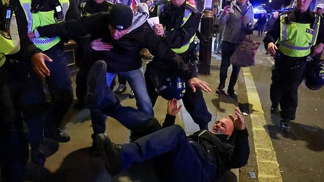पुढारी ऑनलाईन डेस्क : लंडनमध्ये पॅलेस्टाईन समर्थक मोर्चाला हिंसक वळण लागले. या प्रकरणी 120 हून अधिक लोकांना अटक करण्यात आली आहे. सुमारे तीन लाख पॅलेस्टाईन समर्थक माेर्चात सहभागी झाले. याला प्रत्युत्तर म्हणून विरोधकांनीही मोर्चा काढला. यावेळी झालेल्या संघर्षावर पंतप्रधान ऋषी सुनक यांनी चिंता व्यक्त केली आहे.