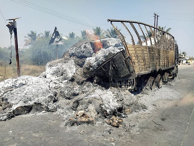 काष्टी; पुढारी वृत्तसेवा : श्रीगोंदा तालुक्यात नगर-दौंड महामार्गावर काष्टीपासून तीन किलोमीटर अंतरावर असलेल्या सांगवी फाट्यावर बारामतीकडून अहमदाबादकडे कापूस घेऊन चाललेल्या ट्रकला मध्यरात्री अचानक आग लागली. या आगीत ट्रकसह संपूर्ण कापूस जळून खाक झाला. आगीत अंदाजे 50 लाख रूपयांचे नुकसान झाले आहे.