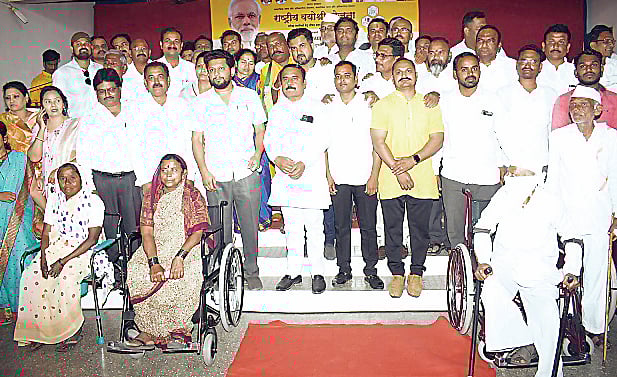 श्रीरामपूर : पुढारी वृत्तसेवा : देशाचे पंतप्रधान नरेंद्र मोदी यांचे संपुर्ण विश्वात नाव झाले आहे. त्यांनी 'सबके साथ सबका विकास' असे घोषवाक्य घेवून सुरु केलेले काम लोकमान्य झाले आहे. त्याचाच एक भाग म्हणून देशात स्वातंत्र्य प्राप्तीनंतर गावाकडील ज्येष्ठ नागरीकांना आवश्यक असलेले साहित्य वाटप करणारे ते पहिले पंतप्रधान असल्याचा खुलासा अहमदनगरचे खा.डॉ. सुजय विखे पाटील यांनी केला. येथील उत्सव मंगल कार्यालयामध्ये आयोजित राष्ट्रीय वयोश्री योजनेच्या साहित्य वाटप प्रसंगी खा.डॉ. सुजयदादा विखे पाटील बोलत होते. भाजपाचे श्रीरामपूर तालुकाध्यक्ष दीपकराव पटारे यांच्या अध्यक्षतेखाली झालेल्या या कार्यक्रमासाठी माजी सभापती नानासाहेब पवार, जि.प. माजी सदस्य शरद नवले, शहराध्यक्ष मारुती बिंगले, नगरसेवक जितेंद्र छाजेड, रवी पाटील, दीपक चव्हाण, गिरीधर आसने, सरपंच बाबा चिडे, गणेश मुदगुले, विठ्ठलराव राऊत, अनिल भनगडे, दीपाली चित्ते, तहसीलदार प्रकाश पाटील आदी मान्यवर उपस्थित होते.