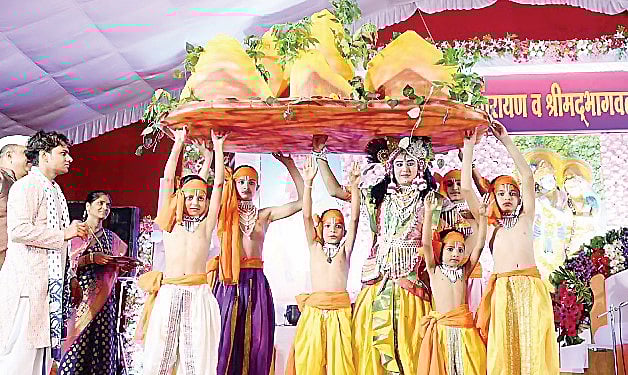 पुतना मावशीचे शरीर 36 तत्वांचे होते. अविद्यारूपी पुतना म्हणजे अज्ञानरूपी शरीर पुतनाच्या वधानंतर तिचा दाह संस्कार केला. तेव्हा त्या अग्नीचा सुगंध येऊ लागला. असे सांगून श्रीपुरुष आत्म्याचे धर्म नाही देहाचे धर्म आहेत. इंद्रयागाद्वारे मेघाला संतुष्ट केले तर पर्जन्यवृष्टी होते, असे ते म्हणाले. पाचव्या पुष्पात सादर झालेल्या गोवर्धन पर्वत जीवंत देखाव्यात साईराज श्रीकांत खर्डे बाल कृष्ण साकारला तर जयराज संतोष खर्डे, साईराज खर्डे, संस्कार खर्डे, राम शेळके हे कृष्णाचे सवंगड्याची भूमिका साकारली. भागवत कथेला दिवसोंदिवस गर्दी होत आहे.