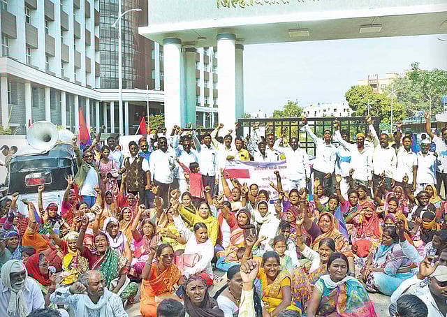 नगर : पुढारी वृत्तसेवा : दलित, आदिवासी, पारधी, भटके, विमुुक्त समाजाने निवास व शेती प्रयोजनासाठी अतिक्रमण केलेल्या गायरान जमिनीवरुन त्यांना हटविण्यासाठी सुरु असलेल्या कारवाईच्या निषेधार्थ आदिवासी पारधी संघटना व मानवी हक्क अभियानाच्या वतीने मंगळवारी जिल्हाधिकारी कार्यालयावर बोंबाबोंब मोर्चा काढण्यात आला. आंदोलकांनी जोरदार निदर्शने करुन शासन-प्रशासनाविरोधात बोंबा मारल्या. मार्केट यार्ड येथील डॉ. बाबासाहेब आंबेडकर, जुने बस स्थानक येथील शिवाजी महाराज, वाडियापार्क येथील महात्मा गांधी तर माळीवाडा येथील महात्मा फुले यांच्या पुतळ्यास पुष्पहार अर्पण करुन मोर्चास प्रारंभ झाला.