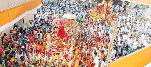 मिरवणुकीवर व श्रीराम मंदिरावर हेलिकॉप्टरमधून पुष्पवृष्टी करण्यात आली. हा नेत्रदिपक सोहळा पाहण्यासाठी व दैवी सोहळ्याचे साथीदार होण्यासाठी आलेल्या सुमारे तीस हजार भाविकांच्या मांदियाळीने वाळकी परिसर फुलून गेला. स्वामी सुबुधेंद्रतीर्थ यांनी हिंदीतून आपल्या रसाळ वाणीतून उपस्थिती हजारो भाविकांना उपदेश केला. यानंतर स्वामी सुबुधेंद्रतीर्थ यांची पैशांनी तुला करण्यात आली.