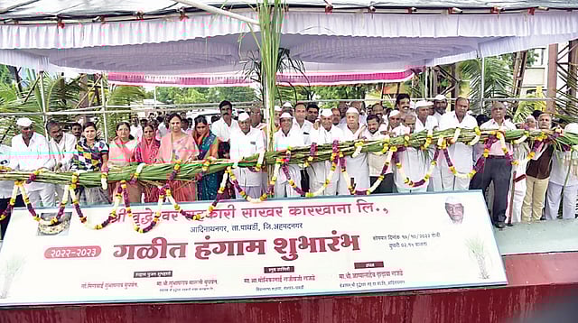 पाथर्डी तालुका : पुढारी वृत्तसेवा : वृद्धेश्वर साखर कारखान्याने यावर्षीच्या गाळप हंगामात साडेसहा लाख मेट्रीक टन ऊस गाळपाचे उद्दिष्ट ठेवले असून, साडेसात लाख क्विंटल साखरेचे उत्पादन अपेक्षित आहे. गुणवत्तापूर्ण हंगाम यशस्वीतेसाठी वृद्धेश्वरचे प्रयत्न राहणार आहेत, कार्यक्षेत्रात यावर्षी पूरक उसाची उपलब्धता आहे. मशिनरीत अद्ययावत सुधारणा केल्याने प्रतीदिन गाळपाचा वेग वाढणार आहे, असे प्रतिपादन संचालक राहुल राजळे यांनी केले. वृद्धेश्वरच्या कारखान्याच्या गळीत हंगामाचा शुभारंभ ज्येष्ठ संचालक सुभाष बुधवंत व मीराबाई बुधवंत या दाम्पत्याच्या हस्ते विधीवत गव्हाणपूजा करून करण्यात आला. त्यावेळी ते बोलत होते. अध्यक्षस्थानी वृध्देश्वरचे अध्यक्ष आप्पासाहेब राजळे होते. तर, आमदार मोनिका राजळे, भाजपा महिला आघाडीच्या तालुकाध्यक्षा काशीबाई गोल्हार, वृध्देश्वरचे उपाध्यक्ष रामकिसन काकडे, खरेदी विक्री संघाचे अध्यक्ष बाळासाहेब अकोलकर, डॉ.यशवंत गवळी, साहेबराव सातपुते, बाबासाहेब किलबिले, कुशीनाथ बर्डे, विष्णूपंत अकोलकर, अनिल बोरुडे सुधाकर भवार, गंगानाना शिंदे, दत्तात्रय मराठे व्यासपीठावर उपस्थित होते.