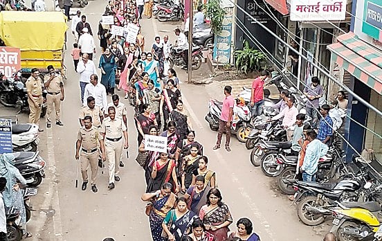 संगमनेर(अहमदनगर); पुढारी वृत्तसेवा : मणिपूरमध्ये आदिवासी महिलांवरती झालेल्या अमानुष अत्याचाराच्या निषेधार्थ संगमनेर शहरातील महिला व तरुणींनी काळ्या साड्या आणि काळे ड्रेस परिधान करून शहरातून निषेध मोर्चा काढत या घटनेचा तीव्र शब्दामध्ये निषेध करत संताप व्यक्त केला.
