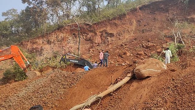 यावेळी अचानक डोंगराचा मोठा भाग अचानक खाली आल्याने दोन जेसीबी मशीन अडकले आहेत. या दरडीखाली कोणी अडकल्याची भीती व्यक्त होत असून राष्ट्रीय महामार्ग व पोलीस घटनास्थळी दाखल झाले आहेत. दरम्यान वाहतूक ठप्प असून दरड काढण्याचे काम सुरु करण्यात आले आहे.