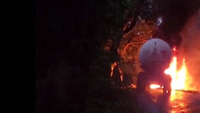 पोलादपूर, पुढारी वृत्तसेवा : मुंबई गोवा महामार्गावरील कशेडी घाटात गॅस वाहतूक करणाऱ्या टँकरला शॉर्ट सर्किटमुळे आग लागली. ही घटना शनिवारी (दि.२९) सायंकाळी सात वाजताच्या सुमारास घडली. याबाबत सविस्तर वृत्त असे की, टँकर चालक दत्ता भोसले हा आपल्या ताब्यातील टँकर चालक दत्ता भोसले हा खोपोली ते जयगड असा घेऊन जात असता कशेडी घाटातटॅंकरने शॉर्ट सर्किट झाल्यामुळे पेट घेतला. सुदैवाने कोणतीही दुर्घटना घडली नाही.