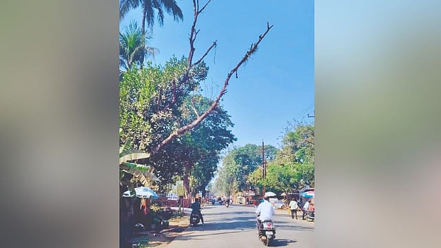 शहरातील गुहागर-विजापूर या मुख्य वर्दळीच्या मार्गावर मार्कंडी मेहता पेट्रोल पंपासमोर रस्त्याच्या एका बाजूला असलेल्या एका खासगी जागेत मोठे वृक्ष आहेत. त्यापैकी एका वृक्षाच्या फांद्या पूर्णपणे निकामी होऊन सुकलेल्या आहेत. या फांद्या रस्त्याच्या मध्यापर्यंत झुकलेल्या असून, या ठिकाणी शालेय विद्यार्थ्यांची दिवसभर वर्दळ असते. तसेच पादचारी, वाहनांची वर्दळ असते. बाजारपेठेत खरेदीसाठी ग्राहकांचीही मोठी वर्दळ असते. या सुकलेल्या फांद्या रस्त्यावर कोसळून दुर्घटना घडण्याची शक्यता आहे. त्यामुळे नगर परिषदेने या सुकलेल्या फांद्या तातडीने तोडाव्यात, अशी मागणी नागरिक करीत आहेत.