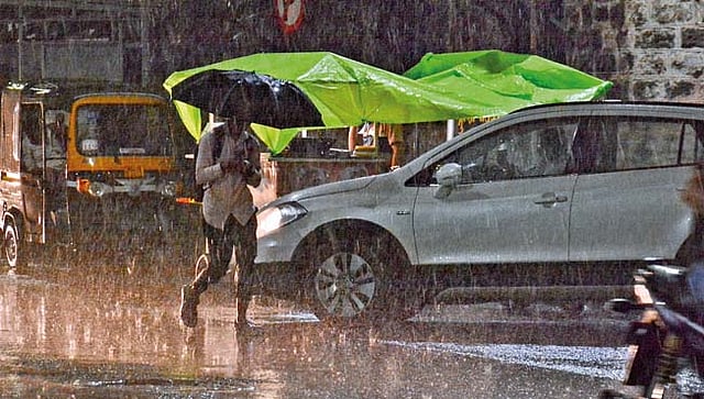 गेले महिनाभर चिपळूण शहर परिसराला सततच्या पावसाने झोडपून काढण्याचे काम सुरू ठेवले आहे. गेले पंधरा दिवस दुपारनंतर सुरू होणारा पाऊस बाजारपेठेतील ग्राहकांची वर्दळ कमी करीत आहे. परिणामी ऐन सण- उत्सवाच्या काळात व्यापाऱ्यांना पावसामुळे मोठा फटका बसत आहे. त्यातच वीजपुरवठा खंडीत होण्याचे प्रकार वारंवार घडत आहेत. आज दुपारी वादळी वाऱ्यासह पावसाने जोरदार हजेरी लावली. सोसाट्याच्या वाऱ्यामुळे काही इमारतीच्या शेडचे पत्रे उडाले तर काही ठिकाणी झाडाच्या फांद्या पडल्या. वादळाबरोबरच ढगांचा गडगडाट आणि कानठळ्या बसविणारा विजांचा कडकडाट होत होता. माणात पाणी साचत आहे. (Chiplun Rain)