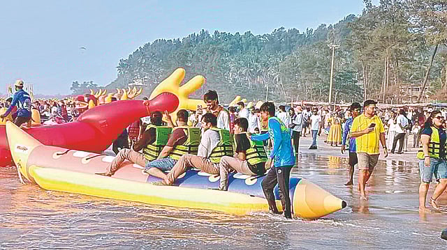 रत्नागिरी : रत्नागिरी जिल्ह्याला लाभलेला समुद्र किनारा व त्या ठिकाणी असणारी पर्यटन स्थळे, अनेक ठिकाणी नियोजित जल्लोष कार्यक्रम तसेच जिल्ह्याची पर्यटन जिल्हा म्हणून असणारी ओळख लक्षात घेता अनेक ठिकाणी नववर्षाच्या स्वागताचा आनंदोत्सव साजरा करण्यासाठी राज्यातूनच नव्हे, तर देश-विदेशातून लाखोंच्या संख्येने पर्यटक जिल्ह्यातील विविध पर्यटनस्थळी दाखल झाले आहेत.