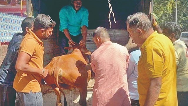 मालवण : मालवण-देऊळवाडा येथील महापुरुष मंदिर परिसरातील रस्त्यावर शनिवारी सकाळी डंपरच्या धडकेत गंभीर जखमी झालेल्या बैलाला स्थानिक नागरिक व बजरंग दलाच्या कार्यकर्त्यांनी तत्काळ मदत करून डॉक्टरांमार्फत उपचार करून पुढील उपचारासाठी वैभववाडी येथील गोशाळेत पाठवले.