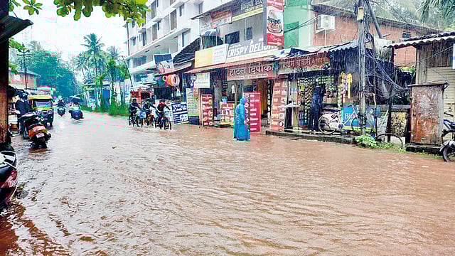 बुधवार सकाळ पासून मालवणात मुसळधार पावसाने जोरदार बॅटिंग केली आहे. यामुळे बाजारपेठेत गुडघाभर पाणी साचले होते. मालवण बस स्थानक समोरील परिसर, भंडारी हायस्कूल रोड ते बाजारपेठ, बांगीवाडा परिसर पाण्याखाली गेला होता. पाण्यातून मार्ग काढतांना वाहनचालक, पादचार्यांना कसरत करावी लागत होती. शहरातील गटारांची मर्यादा यानिमित्त उघड झाली. नागरिकांनी याबाबत नाराजी व्यक्त केली.