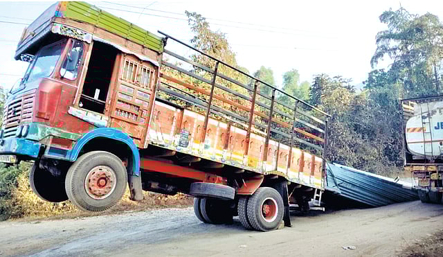 या ठिकाणी असणारा मोठा चढाव, रस्त्यावरचे खड्डे आणि गाडीत असलेला ओव्हरलोड माल यामुळे चालकाचे वाहनावरील नियंत्रण सुटले अन् हा अपघात झाल्याची प्राथमिक माहिती आहे. या चढावावर वाहन आवरण्याचा प्रयत्न करत असताना ट्रकची समोरील दोन्ही चाक जमिनीपासून तब्बल 10 फूट वर उचलली गेली. काही क्षण वाहन हवेत लटकले. मागील बाजूस असलेला लोखंडी माल खाली घसरून जमिनीवर आल्याने वाहन मागे सरकले नाही किंवा पलटी झाले नाही. त्यामुळे मोठी दुर्घटना टळली. दैव बलवत्तर म्हणून या अपघातात चालक सुखरूप बचावला. घटनेनंतर काही काळ वाहतूक विस्कळीत झाली होती. जेसीबीच्या साहाय्याने लोखंडी साहित्य बाजूला करून अपघातग्रस्त वाहन रस्त्याच्या बाजूला करण्याचे काम सुरू होते.
