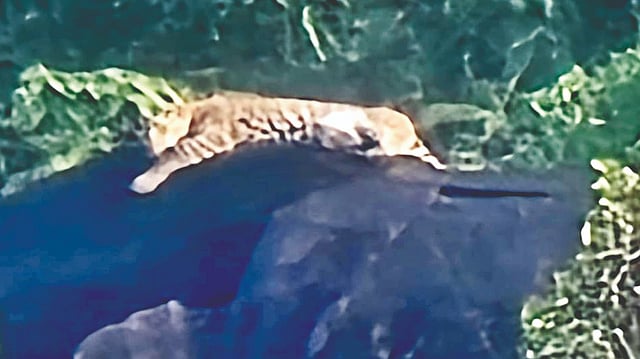 बांदा : सावंतवाडी तालुक्यातील इन्सुली-क्षेत्रफळवाडी परिसर पुन्हा एकदा चर्चेत आला आहे. मुंबई-गोवा राष्ट्रीय महामार्गालगत घनदाट जंगलात पट्टेरी वाघ दिसल्याची घटना घडली असून, वाघाचा चा वावर प्रवाशांच्या मोबाईल कॅमेर्यात कैद झाल्याने तो सोशल मीडियावर जोरदार व्हायरल झाला आहे. उंच खडकावर निवांत बसलेल्या या वाघाच्या दृश्याने स्थानिक आणि पर्यावरणप्रेमींचा उत्साह द्विगुणित झाला आहे.