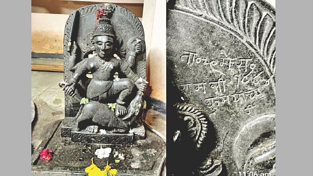 ओरोस : शिलालेख हे इतिहासाच्या अभ्यासाचे एक मुख्य साधन आहे. मात्र देवतेच्या मूर्तीवर सहसा शिलालेख आढळत नाही. असे असताना सिंधुदुर्ग जिल्ह्यातील ओरोस बुद्रुक येथील सातेरी मंदिर परिसरातील क्षेत्रपाल मंदिरात असलेल्या महिषासुरमर्दिनीच्या मूर्तीवर दिनांक आणि नाममुद्रा असलेला 142 वर्षांपूर्वीचा शिलालेख आढळून आला आहे. ही बाब अतिशय दुर्मीळ आहे, अशी माहिती पुरातत्व आणि मूर्तीशास्त्राचे अभ्यासक सतीश लळीत यांनी दिली आहे.