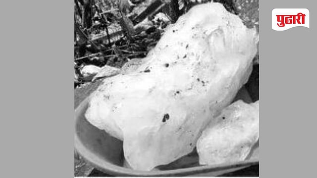 पुरावा आहे. मैगाज्ञायोमेटोर कसा तयार होतो मालवण किनारपट्टीवर हवेतील आर्द्रता जास्त असते. उन्हाळ्यात जमिनीवर प्रचंड उष्णता असल्याने हवा हलकी होऊन वेगाने वर जाते. ही खालची आई ह्या दुपारच्या वेळी यर जाते (हवेधा अर्थगामी प्रवाह) आणि उद्यावर असलेल्या या पश्चिमेकडील थंड जेट स्ट्रीमच्या संपर्कात येते, तेव्हा तिये रूपांतर अचानक बर्फाच्या गोळ्यात होते. मरख्या कमी दाबाच्या पट्ट्याकडे हजारौ लहान गारा किंवा बर्फाचे कारण गतिशीलतेने एकमेकांना चिकटून एकच मोठा बर्गचा गोळा तयार होतो. है जेट स्ट्रीममधील बारे इतके शक्तिशाली असतात की, ते वर्षांच्या कणांना बराच वेळ उंचावर तरंगत ठेवतात जोपर्यंत तो बर्फाचा गोळा ५ किलोसारखा जड होत नाही, तोपर्यंत है जेट स्ट्रीमशी संबंधित वारे त्याला खाली पडू देत नाहीत. लहान लहान गोळ्यांचे सराबर यर साचतात आणि जड महाकाय गारा म्हणजे मेगाक्रायोमेटोर (Megacryometeor) तयार होतो. जर त्या गोळ्याचे निरीक्षण केल्यार त्यामाध्ये अनेक गोळे एकत्र झाल्यामुळे स्तर निर्माण झालेले दिसून येत आहेत.