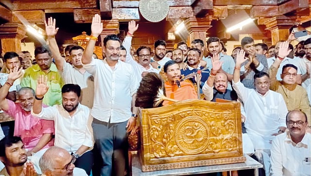 दरम्यान, कोल्हापुरात काय निर्णय झाला? पुढील दिशा काय असणार? हे जाणून घेण्यासाठी राज्यासह सीमाभागातून शेकडो नागरिक नांदणी मठात दाखल झाले होते. तसेच बंद खोलीत काय चर्चा झाली यांची सर्वांना उत्सुकता लागली होती. अखेर रात्री 8 च्या सुमारास स्वस्तिश्री जिनसेन भट्टारक पट्टाचार्य महास्वामी यांच्यासह सर्व लोकप्रतिनिधी धर्मसभास्थळी आले. यावेळी महास्वामी बोलत होते. महास्वामी पुढे म्हणाले, माधुरी ऊर्फ महादेवी हत्तीण विषय सर्व धर्मीय नागरिकांनी उचलून धरला असून, हा विषय देश पातळीवरील बनला आहे. त्यामुळे जोपर्यंत न्यायालयीन बाबीची पूर्तता पूर्ण होऊन सकारात्मक निर्णय होत नाही, तोपर्यंत सर्व धर्मीयांनी संयम राखवा, असे अवाहन त्यांनी केले. यावेळी डॉ. सागर पाटील, सागर संभुशेट्टे, धनंजय टारे, विशाल चौगुुले, राहुल बंडगर, राजेंद्र झेले, संतोष खामकर, जोतिराम जाधव, नितीन बागे, शेखर पाटील यांच्यासह सर्वधर्मीय पदाधिकारी व नागरिक हजारोंच्या संख्येने उपस्थित होते.