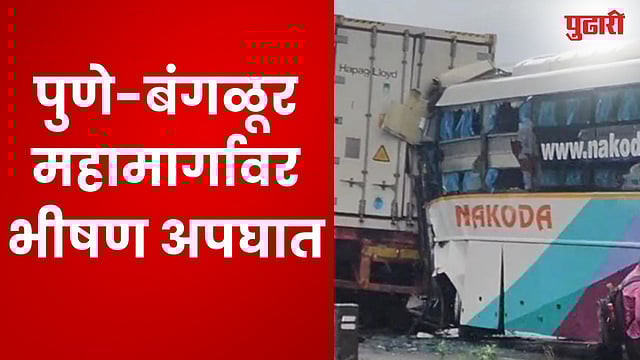 कोल्हापूर : पुणे-बंगळुरू महामार्गावर आज सकाळी भीषण अपघात झाला. कंटेनरला ट्रॅव्हल्सने पाठीमागून जोरदार धडक दिली. तर ट्रॅव्हल्सलाही पाठीमागून भरधाव वेगाने आलेली ओमनी धडकली. या अपघातात एकाचा मृत्यू झाला, तर १५ जण जखमी झाले आहेत. महामार्गावर टोप-संभापूरजवळ हा अपघात झाला. धडक एवढी जोरत होती की ट्रॅव्हल्सच्या पुढच्या भागाचा चुराडा झाला.
