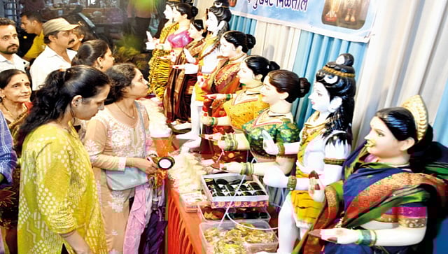 गेल्या दोन दिवसांपासून महिला गौरीच्या पूजा, नैवेद्यासाठी लागणार्या साहित्याची खरेदी करत होत्या. गौरीचे मुखवटे, दागिने, आरास सजावट साहित्य खरेदीसाठी बाजारपेठेत मोठी गर्दी झाली होती. रविवारी नऊवारी साडी, नथ, पारंपरिक दागिने परिधान करून महिला, युवतींच्या हस्ते गौरी आवाहन केले जाणार आहे.