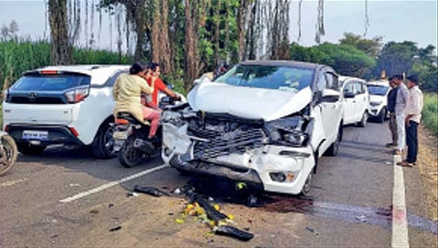 मंत्री तानाजी सावंत हे रविवारी कोल्हापूर दौर्यावर होते. दुपारी तीनच्या सुमारास अंबाबाईदेवीचे दर्शन आटोपून त्यांचा ताफा जोतिबा डोंगराच्या दिशेने निघाला होता. रत्नागिरी मार्गावरील सोनतळीनजीक त्यांच्या वाहनामागील मोटारीवरील चालकाचा ताबा सुटल्याने सावंत बसलेल्या मोटारीला पाठीमागून धडक बसली. पाठीमागील मोटारीत सावंत यांचे दोन स्वीय सहायक होते. त्यातील रविराज जाधव यांच्या पायाला दुखापत झाली. तसेच मोटारीच्या इंजिनमधूनही धूर आला. ही वाहने बदलून मंत्री सावंत अन्य एका मोटारीतून जोतिबाकडे रवाना झाले. अपघातात दोन्ही मोटारींचे मोठे नुकसान झाले आहे.