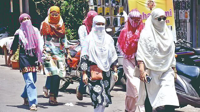 कोल्हापूर : उन्हापासून बचावासाठी महिला असा स्टोन, सनकोट घालून फिरताना दिसत आहेत.  (छाया ः मिलन मकानदार)