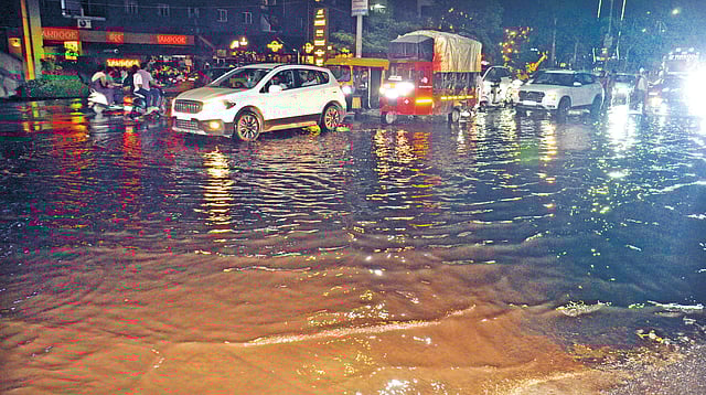 कोल्हापूर : कावळा नाका परिसरातील सेव्हंथ डे स्कूल परिसरात पाईपलाईनला शुक्रवारी रात्री अचानक गळती लागली. यामुळे सुमारे फूटभर पाणी रस्त्यावरून वाहत होते. या परिसरातील आयोध्या पार्कमधील सखल भागात गळतीचे पाणी घुसले. यामुळे लाखो लिटर पाणी वाया गेले. दरम्यान, रहदारीच्या रस्त्यावर गर्दीच्या वेळी पाईपलाईन फुटून पाणी वाहू लागल्याने वाहतुकीला अडथळा निर्माण झाला होता. पाण्यातून संथ गतीने लोकांना वाहन चालवावे लागल्याने रस्त्यावर वाहतुकीची कोंडी झाली होती.