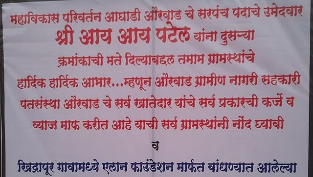 तर याच ठिकाणी दुसऱ्या दिवशी अज्ञातांनी फलक उभा करून आय.आय. पटेल यांच्या कामकाजावर प्रश्नचिन्ह उपस्थित केले आहे. महाविकास परिवर्तन आघाडी औरवाडचे सरपंचपदाचे उमेदवार आय. आय. पटेल यांना दुसऱ्या क्रमांकाची मते दिल्याबद्दल तमाम ग्रामस्थांचे हार्दिक हार्दिक आभार. औरवाड ग्रामीण नागरी सहकारी पतसंस्था सर्व खातेदार यांची सर्व प्रकारची कर्जे व व्याज माफ करीत आहे. याची सर्व ग्रामस्थांनी नोंद घ्यावी व खिद्रापूर गावामध्ये एलान फाउंडेशनतर्फे बांधण्यात आलेल्या घरांमध्ये जी बेकायदेशीर वसुली केली आहे. ती परत करेन आणि राहिलेले अपूर्ण काम पूर्ण करून देईन, अशा मजकुराचा फलक लावत प्रतिउत्तर दिले आहे.