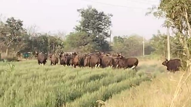 आज (दि.९) सकाळी आठच्या सुमारास सिद्धेश्वर मंदिराच्या पूर्वेला पायथ्याशी व हॉटेल ग्रीन व्हॅली जवळील शेत पिकात सुमारे २० गव्यांच्या एका कळपाकडून ज्वारी, गहू पीक फस्त केले. हाकलण्यासाठी काही शेतकरी जमले. पण यातून काही विपरीत घडायला नको, म्हणून या कळपाच्या पुढे जायला कोणी तयार नव्हते.