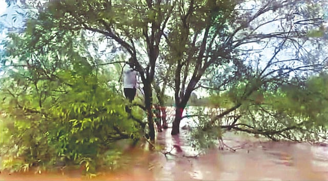 लादेवाडी (ता. शिराळा, जि. सांगली) येथील बजरंग पांडुरंग खामकर (वय 58) यांच्या जीवावर बेतलेला हा प्रसंग. खामकर हे काखेहून मोटारसायकलवरून लादेवाडीकडे गुरुवारी रात्री आठ वाजण्याच्या दरम्यान निघाले होते. काखे गावाजवळील कोल्हापूर-सांगली या दोन जिल्ह्यांना जोडणार्या वारणा नदीवरील काखे-मांगले पुलावर ते थांबले. पुलावरील लोखंडी ग्रीलवरून पुराचे पाणी पाहत असताना तोल गेल्याने ते नदीपात्रात पडले. पुराच्या पाण्याला वेग असल्याने ते काही अंतर वाहून गेले आणि नदीपात्राच्या मध्यभागी असलेल्या एका मोठ्या झाडाला अडकले. या झाडाच्या फांदीवर बसून त्यांनी संपूर्ण रात्र काढली.