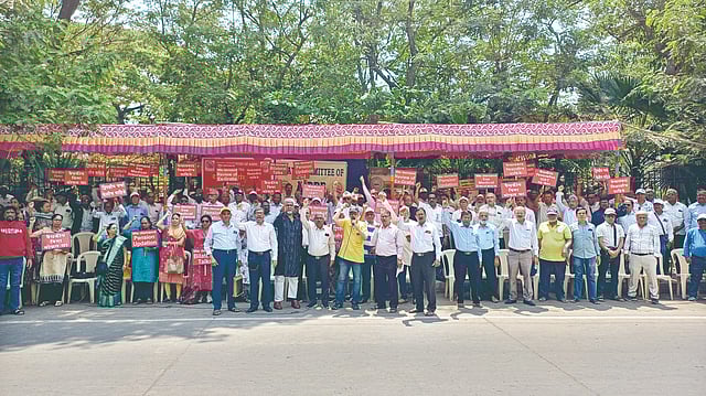 कोल्हापूर : गेल्या 33 वर्षांपासून बँक कर्मचार्यांच्या पेन्शन करानुसार मासिक पेन्शनमध्ये सुधारणा झालेली नाही. यासह अनेक मागण्यांसाठी अखिल भारतीय निवृत्त बँक कर्मचारी संघटनेच्या सेवानिवृत्त कर्मचार्यांनी गुरुवारी जिल्हाधिकारी कार्यालयासमोर धरणे आंदोलन केले. मागण्यांचे निवेदन नायब तहसीलदार नम्रता चौगुले यांना देण्यात आले.