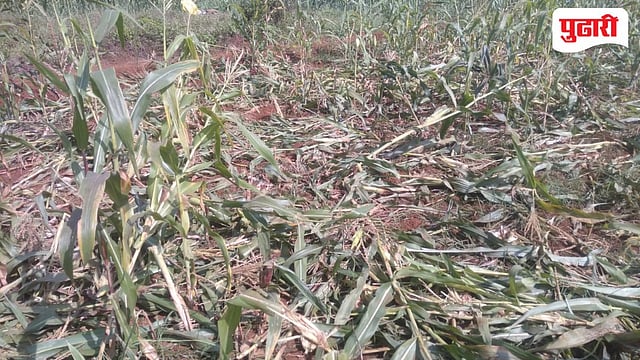 येथील शेतकरी संतोष शामराव पाटील आणि केशव बाळू पाटील यांनी मेहनतीने उभे केलेले सुमारे बारा गुंठे क्षेत्रातील मका पीक एका रात्रीत नष्ट झाल्याने ते हवालदिल झाले आहेत. डोळ्यादेखत सोन्यासारखे पीक मातीमोल झाल्याने केवळ आर्थिकच नव्हे तर मानसिक धक्काही शेतकऱ्यांना बसला आहे.