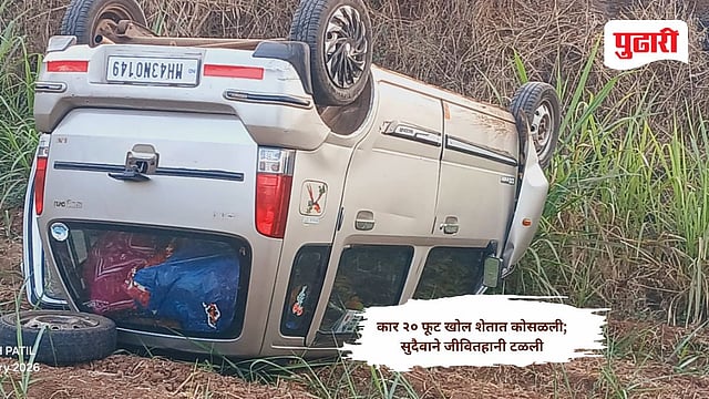 सरवडे : सोळांकुर ते गैबी घाटा (ता राधानगरी) दरम्यान बाळूमामा मंदिरा नजीकच्या धोकादायक वळणावर पहाटे सहाच्या सुमारास भरधाव कार जवळपास २० फूट खोल शेतात कोसळल्याची थरारक घटना घडली. कार पलटी होऊन झालेल्या या भीषण अपघातात सुदैवाने कोणतीही जीवितहानी झाली नसली तरी कारचे प्रचंड नुकसान झाले आहे.