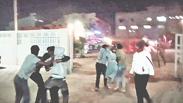 शहापूर पोलिस ठाण्याच्या हद्दीत असलेल्या एका गावातील मुलाचे शिवाजीनगर पोलिस ठाण्याच्या हद्दीतील गावातील मुलीच्या घरी जाणे-येणे होते. ओळखीतून त्यांचे प्रेमसंबंध जुळले. दोघेही सज्ञान असल्यामुळे त्यांनी घरातून पळून जाऊन लग्न केले. मंगळवारी रात्री सव्वाआठच्या सुमारास दोघेही शहापूर पोलीस ठाण्याच्या आवारात आले. याची कुणकुण मुलीकडील नातेवाईकांना लागल्यामुळे मुलीकडील नातेवाईकांनीही धाव घेतली.