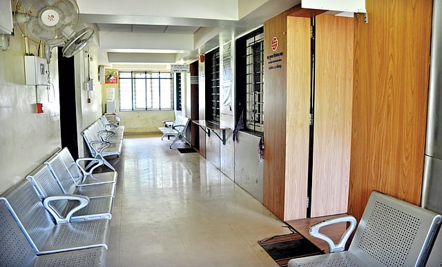 कोल्हापूर : सरकारी कर्मचार्‍यांच्या संपामुळे एरव्ही दस्त नोंदणीसाठी गर्दीने गजबजून गेलेल्या दुय्यम निबंधक कार्यालयात बुधवारी असा शुकशुकाट होता.  (छाया : पप्पू अत्तार)