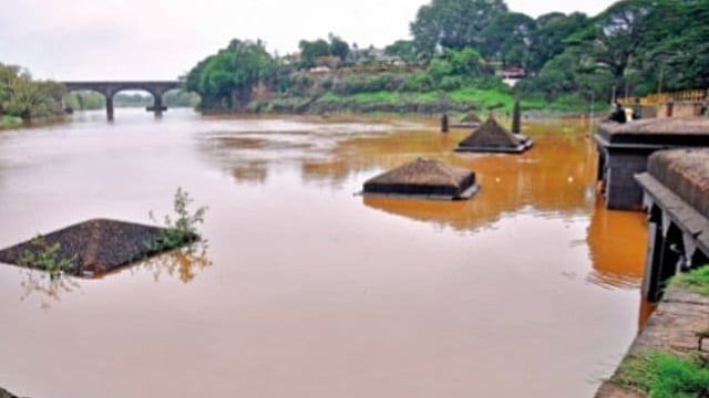 जिल्हा आणि शहरात गेले दोन दिवस पावसाच्या जोरदार पाऊस आहे. त पंचगंगा नदीच्या पाणी पातळीत झपाट्याने वाढ होत आहे. सध्या पंचगंगा नदीची राजाराम बंधाऱ्यावर पाणी पातळी ३७ फूटांवर पोहोचली आहे. कोल्हापूर जिल्ह्यातील एकूण ७४ बंधारे सध्या पाण्याखाली गेले आहेत. यामुळे अनेक ठिकाणी रस्ते हे वाहतुकीसाठी बंद झाले आहेत. जिल्हा आपत्ती विभागाकडून नागरिकांच्या सुरक्षेसाठी उपययोजना केल्या असून, नदी काठावरील गावे तसेच नागरिकांना सतर्क राहण्याच्या सूचना करण्यात आल्या आहेत. (Kolhapur Rain)
