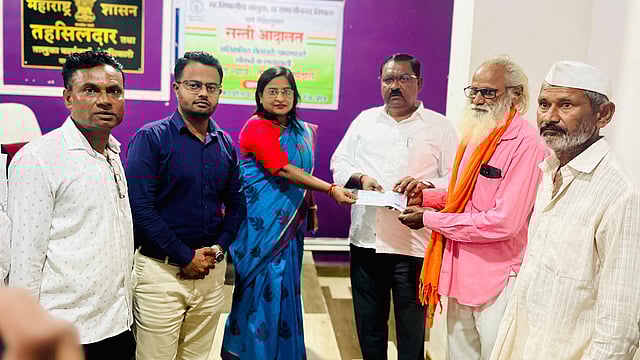 आष्टी: तालुक्यातील शिंदेवाडी येथील शनिवारी (दि.२०) भाग्यश्री गोपाळ खंडागळे (वय ४५) या शेतातून घरी परतत असताना माळेवाडी नदीच्या पुरात वाहून गेल्याने निधन झाले. त्यांच्या कुटुंबियांना आ. सुरेश धस यांच्या हस्ते ४ लाखांचा आर्थिक मदतीचा धनादेश सुपूर्द करण्यात आला.
