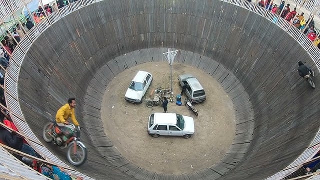 केज : केज येथील आनंदनगरी मध्ये असलेल्या 'मौत का कुवा' या थरारक खेळात दोन भरधाव मोटार सायकलींची जोरदार धडक झाली. यात दोघे गंभीर जखमी झाले. दोघांनाही उपचारासाठी अंबाजोगाई येथे हलविले आहे. केज येथील राजमुद्रा गणेश मंडळा समोर पंचायत समितीच्या ग्राऊंडवर दरवर्षी आनंद नगरी असते. रहाट पाळणे, रेल्वे, फराळाची दुकाने आणि खेळणी व मनोरंजनाच्या खेळा सोबतच थरारक खेळ खेळले जातात.