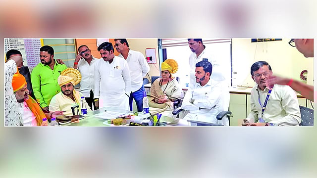 मुख्याधिकाऱ्यांच्या दालनात आ. पंडित, नगराध्यक्षा प्रेमलता पारवे यांच्यासह फारुक पटेल हे देखील उपस्थित होते. यावेळी नगराध्यक्षांना फेटा बांधल्यानंतर संबंधित व्यक्तीने आ. पंडित यांना फेटा बांधण्याचा प्रयत्न केला, त्यावेळी त्यांनी मला नको पटेल यांना बांधा म्हणताच पटेल त्या ठिकाणाहून उठून निघाले होते. त्यावेळी आ. पंडित यांनी त्यांना आग्रह करून पुन्हा बसवले व तुम्ही गटनेते आहात असे म्हणताच मी गटनेता नाही, मी गटनेता नाही असे फारुक पटेल म्हणत होते, तसेच फेटा देखील बांधायचा नाही असे म्हणत होते. यावेळी आ. पंडित यांनी आग्रह केल्यानंतर पटेल यांनी फेटा बांधला, परंतु त्यांच्या चेहऱ्यावर मात्र हास्य नसल्याने हे नाराजीनाट्य चर्चेचा विषय ठरले.