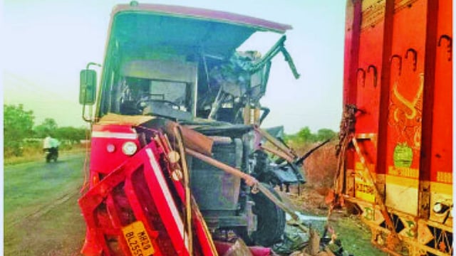 Terrible accident on Kage-Kalamb road; ST bus hits parked truck