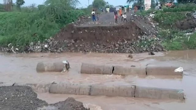 आष्टी : तालुक्यातील कडा शहरात मागील अनेक महिन्यांपासून बीड-नगर राष्ट्रीय महामार्गावरील साबलखेड ते आष्टी या अंतरावरील रस्त्याचे काम सुरू आहे. कडा येथे रहदारीसाठी केलेला पर्यायी पूल सोमवारी (दि.८) रात्री पडलेल्या मुसळधार पावसामुळे वाहून गेल्याने गावाचा संपर्क तुटला आहे. यामुळे वाहनधारकांनी येण्या-जाण्यासाठी पर्यायी रस्त्याचा अवलंब करावा, असे आवाहन तहसीलदार प्रमोद गायकवाड यांनी केले आहे.