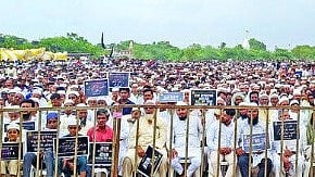 बीड शहरातील मोमीनपुरा बायपास येथील इज्तेमागाह मैदानावर रविवारी आयोजित वक्फ सुधारणा विधेयक सुधारणा कायद्याविरुद्ध जन निषेध सभेत ऑल इंडिया मुस्लिम पर्सनल लॉ बोर्डाचे अध्यक्ष हजरत सैफुल्लाह बोलत होते. यावेळी व्यासपीठावर ऑल इंडिया मुस्लिम पर्सनल लॉ बोर्डाचे सचिव मौलाना मोहम्मद उमरेन महफुज सहाब रहमानी राष्ट्रीय प्रवक्ते कासिम रसूल इलियास, मुफ्ती मोइजोद्दीन कासमी, मौलाना रफीउद्दिन अशरफी, मौलाना अब्दुल मुजीब यांच्यासह बीड येथील वक्फ बचाव कमिटी व मजलिस उलेमा आदींची उपस्थिती होती.