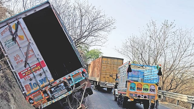 प्रसंगावधान राखत चालक रामनिवास कुशवा (40, रा. धोलपूर, राजस्थान) यांनी अनियंत्रित झालेला ट्रेलर डोंगराच्या कडेला असलेल्या नालीकडे वळवून थांबविण्याचा प्रयत्न केला. त्यांच्या तत्परतेमुळे ट्रेलर थांबविण्यात यश आले आणि मोठा अनर्थ टळला. मात्र या अपघातात ट्रेलरचे मोठे नुकसान झाले असून, चालक व वाहक किरकोळ जखमी झाले.