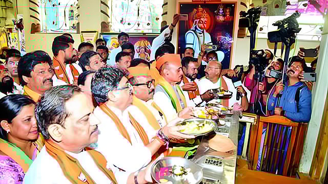 यावेळी ओबीसी कल्याणमंत्री अतुल सावे, माजी केंद्रीय राज्यमंत्री खासदार डॉ. भागवत कराड, आमदार संजय केनेकर, शहर जिल्हाध्यक्ष किशोर शितोळे यांच्या हस्ते ही महाआरती करण्यात आली. बाबरी मशीद विध्वंसनिमित्ताने भाजपच्या वतीने दरवर्षी ६ डिसेंबर हा दिवस शौर्य दिन म्हणून साजरा केला जातो. त्यानिमित्ताने महाआरती घेण्यात येते.